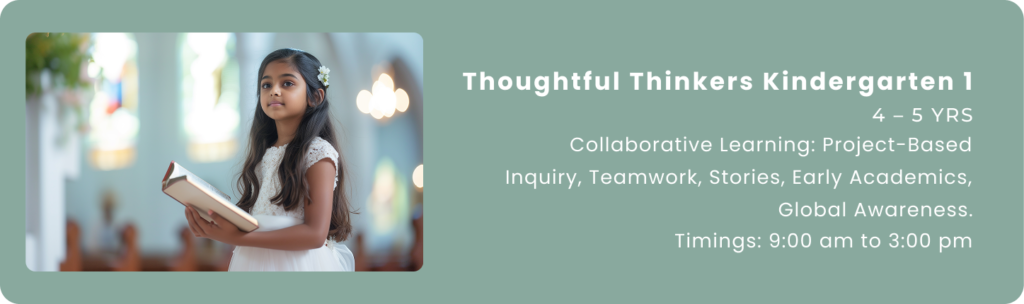 A curriculum crafted from global early years philosophies Montessori, Reggio Emilia, IB, Finnish and Play-Based rooted in warmth, joy, and the culture of Tirupati.